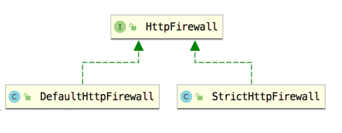 • StricHttpFirewall 这是一个检查严格的Http防火墙,也是框架默认使用的 Http防火墙