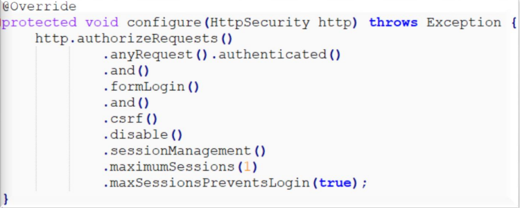 当会话并发数达到限制时,新的会话将之前旧的会话挤下线,旧的登录会话失效。配置如下