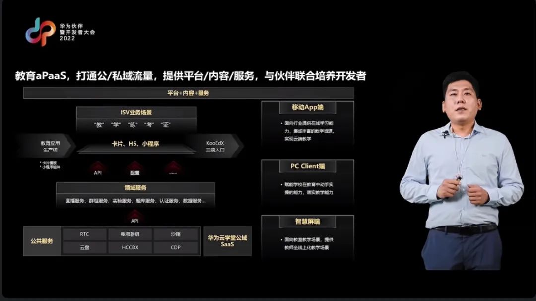 华为云还通过云学堂持续培养和赋能伙伴、开发者。为匹配产业发展节奏,华为云学堂支持能力外溢,提供教育aPaaS一站式人才培养云平台——KooEdX,打通公私域流量,与伙伴联合培养开发者,以“平台+内容+服务”为数字化人才培养助力,实现人才发展闭环。