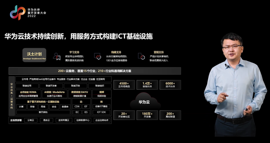 为了将开发者能力提升落到实处,华为云将线上和线下结合,加大投入赋能培训。线上通过开发者社区的海量技术内容、全技术领域培训课程、丰富的圈层活动支持;在线下,以城市为单位通过150多个开发者创新中心的技术大咖1v1技术支持、圈层持续运营、商业成长对接支持等能力,落地沃土云创计划。2022年华为云将完成超过500万+人次的赋能,支持开发者的持续创新。
