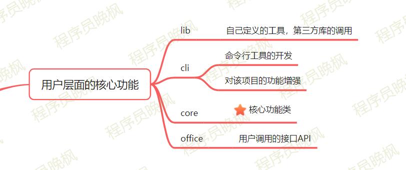 office库只提供API接口,核心功能类的实现在core文件夹进行开发,core中的通用工具类或者对第三方库的调用,在lib里进行开发。它们之间之所以是层层调用的关系,是为了代码的解耦合,使代码逻辑更加清晰。
