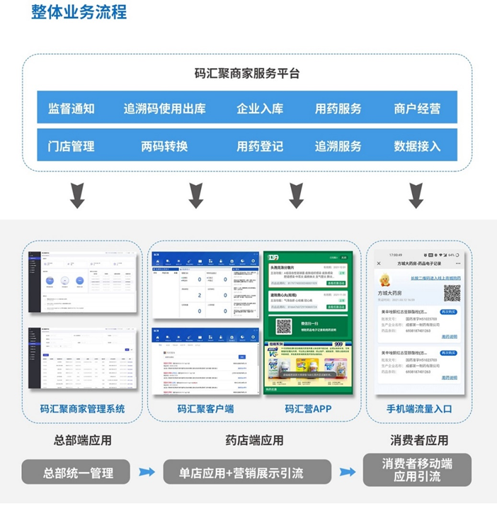提供药品追溯、经营管理、消费者营销方案,同时保障企业高效、合规经营