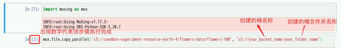 修改说明:将代码中的“your_bucket_name”替换为创建的OBS桶名称;将代码中的“your_folder_name”替换为OBS桶中创建的文件夹名称(1.1步骤中要求记住的任意名称)