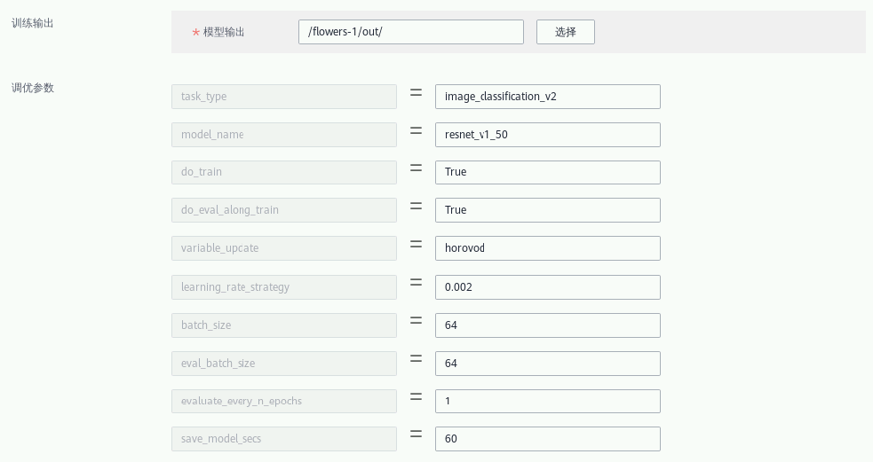 ④ “训练输出位置”选择2.2步骤中的训练输出位置;