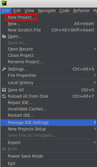 导入 Python SDK 这个工程,打开桌面预置的Pycharm软件,然后在左侧“File”页面单击“New Project”