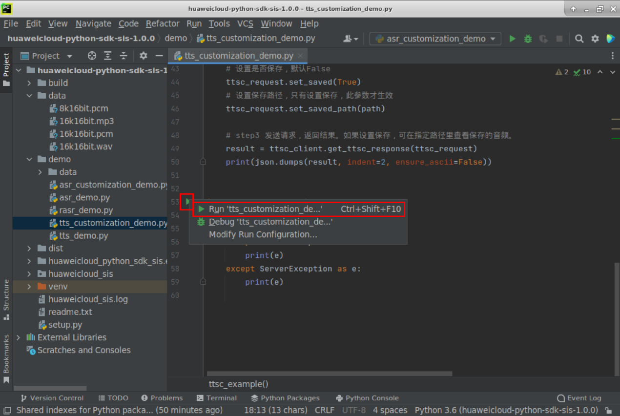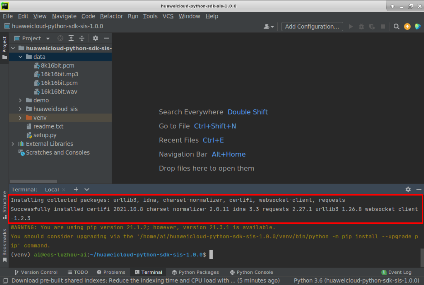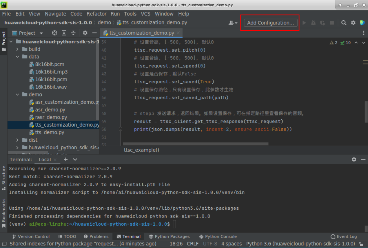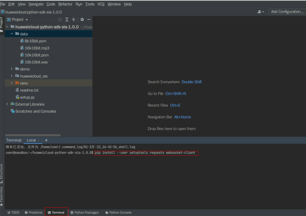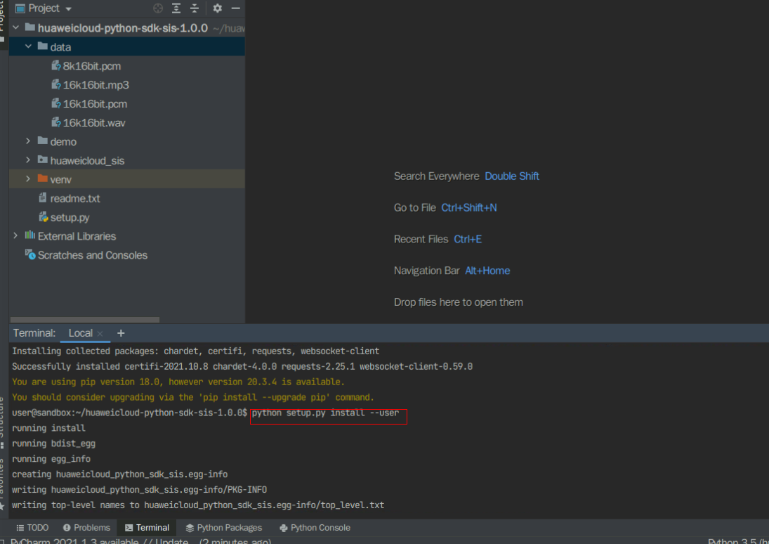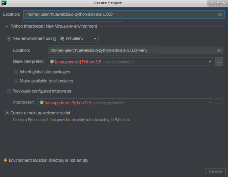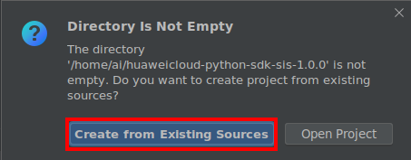 Location>“huaweicloud-python-sdk-sis-1.0.0”, environment Location> “huaweicloud-python-sdk-sis-1.0.0/venv”找到这个定位