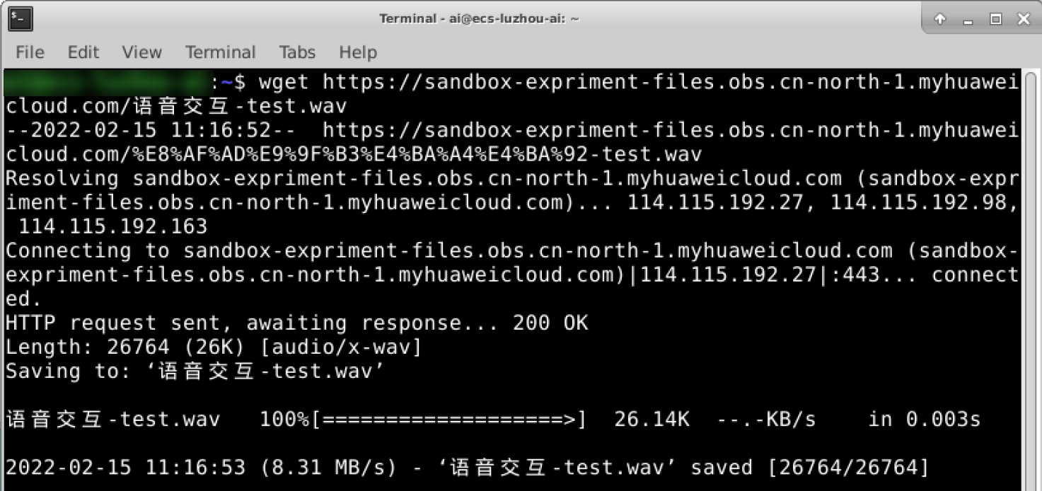wget https://sandbox-expriment-files.obs.cn-north-1.myhuaweicloud.com/语音交互-test.wav -O 语音交互-test.wav