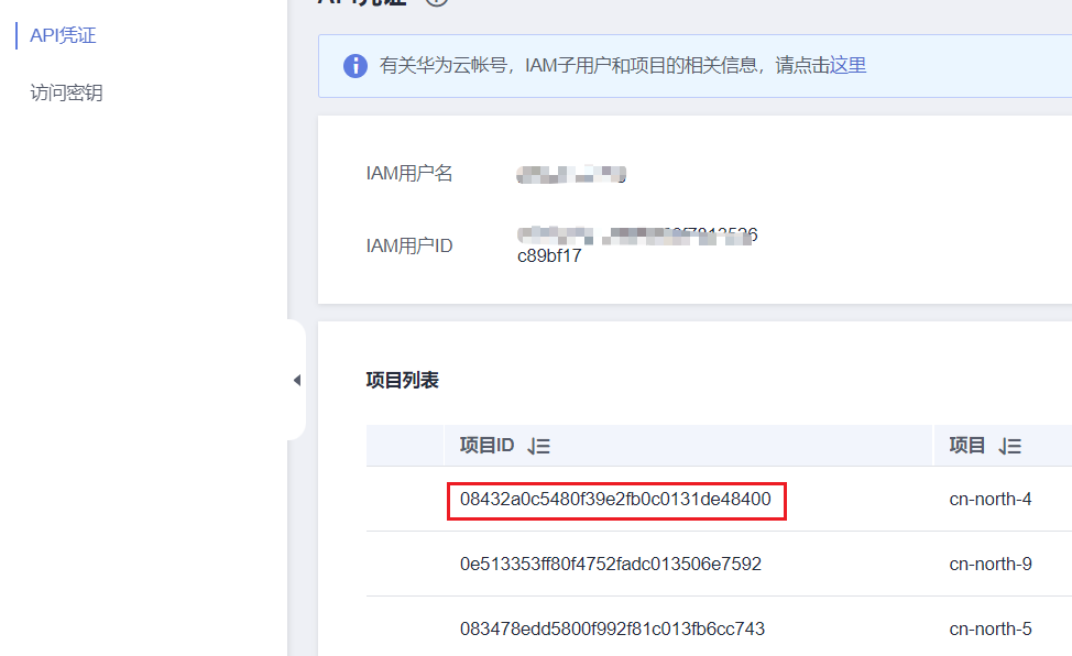 四 获取AK,SK及项目ID