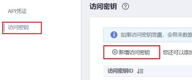 ③ 接着依次点击【访问密钥】、及【新增访问密钥】