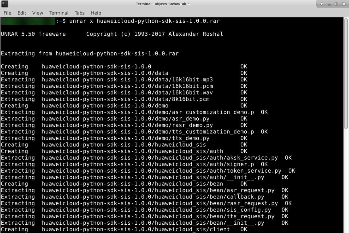 unrar x huaweicloud-python-sdk-sis-1.0.0.rar