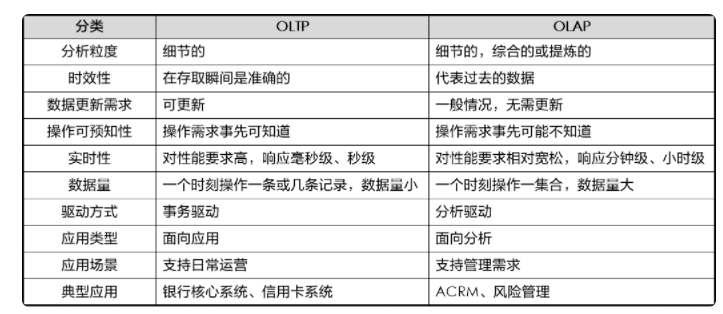 是指对数据的查询和分析操作,通常对大量的历史数据查询和分析。涉及到的历史周期比较长,数据量大,在不同层级上的汇总,聚合操作使得事务处理操作比较复杂。