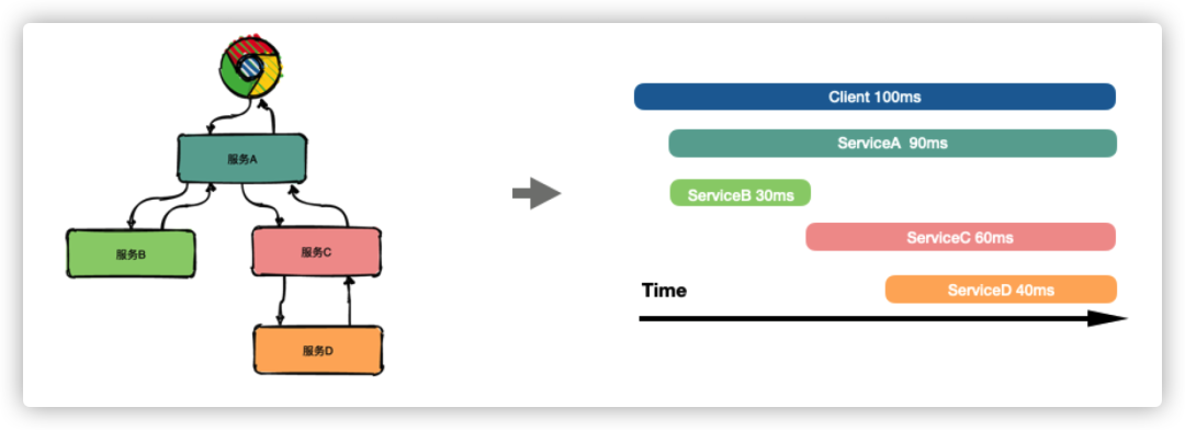 在分布式架构下,当用户从浏览器客户端发起一个请求时,后端处理逻辑往往贯穿多个分布式服务,这时会浮现很多问题,比如: