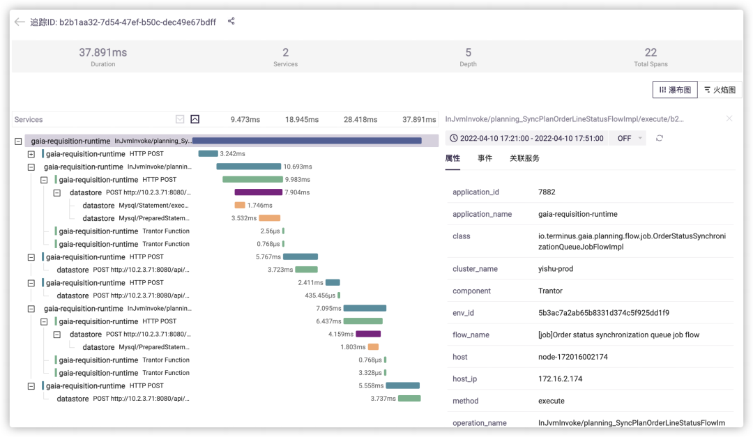 如上图所示,通过分布式链路追踪构建出完整的请求链路后,可以很直观地看到请求耗时主要耗费在哪个服务环节,帮助我们更快速聚焦问题。