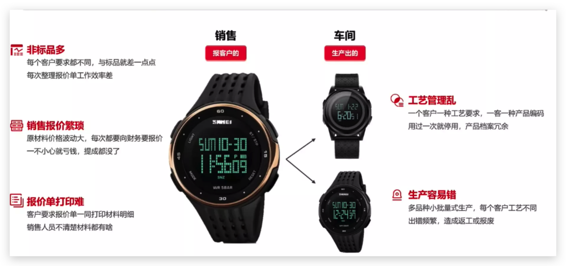 - 非标品多:每个客户要求都不同,与标品就差一点点每次整理报价单工作效率差;