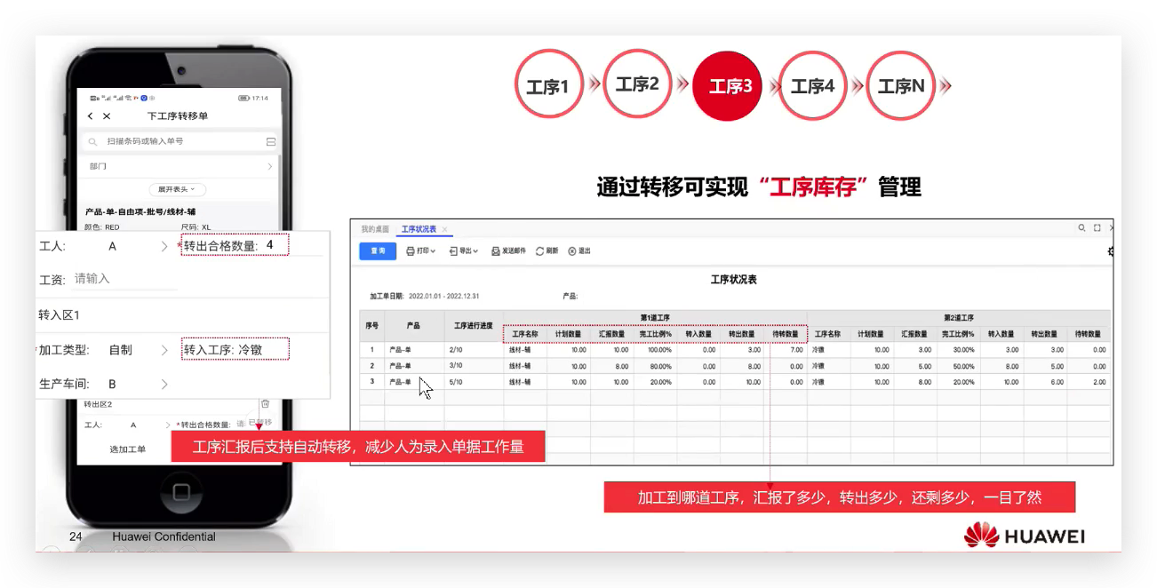 应用场景:工序派工、工序汇报、扫码领料、工序转移、工序委外、紧急插单。