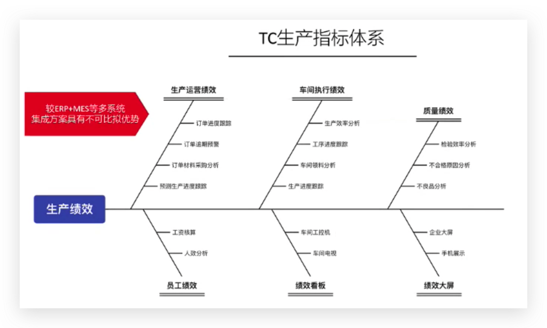 生产绩效须建立覆盖生产运营、车间执行、员工绩效以及质量全过程的指标体系,连同销售、采购、财务数据贯穿人、机、 料综合分析,站在全局视角一体化运营决策,并为不同用户不同时间不同地点提供多种展示功能。