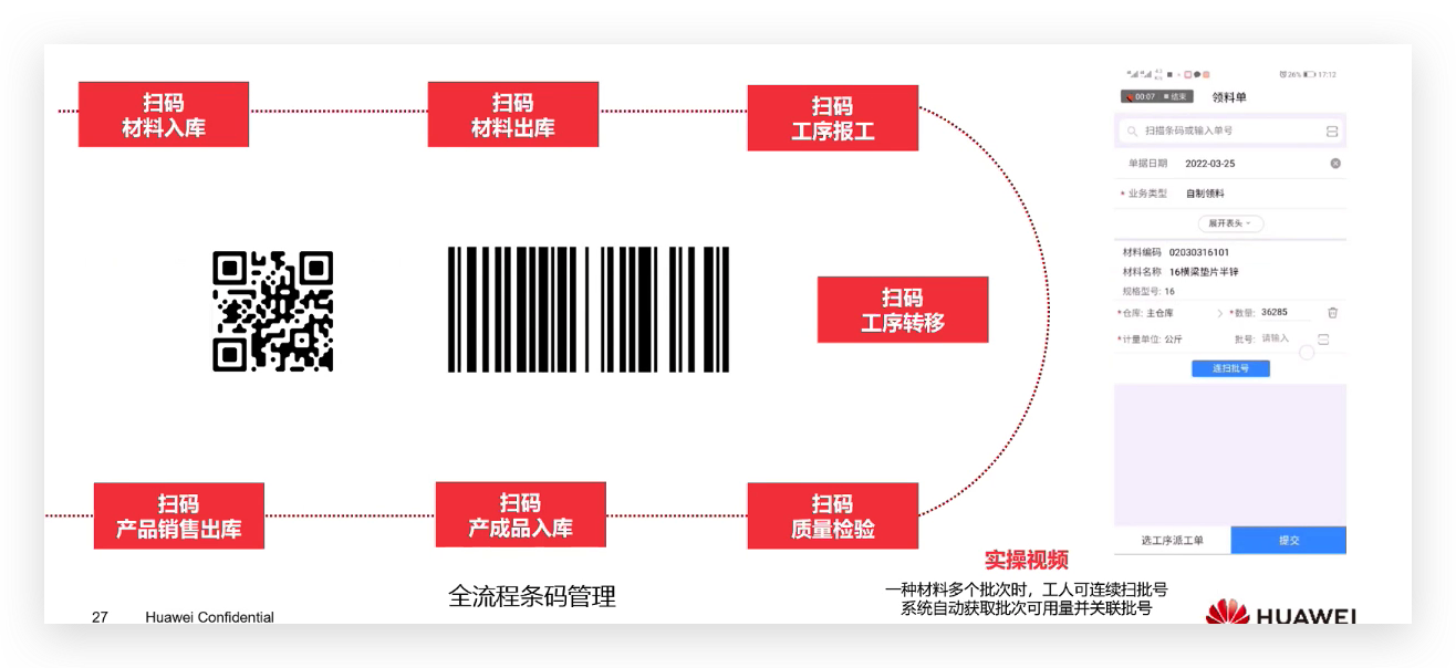利用条码/二维码管理物料,可进一步增强数智化应用体验,助力车间与仓管人员管理物料更高效、更准确。