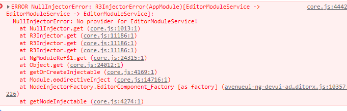 图5 使用ModalService的时候创建引用EditorX的组件的报错找不到对应服务提供商