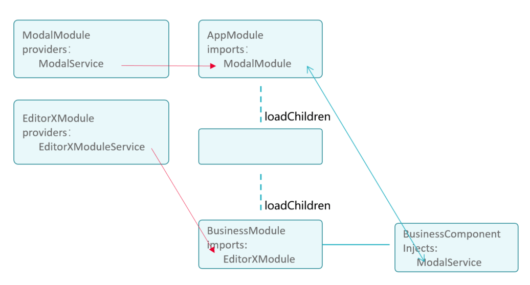 把 EditorXModule 放到 ModalModule 声明的地方,这样注入器就能找到EditorXModule提供的EditorModuleService —— 这是最糟糕的一种解法,本身loadChildren实现的懒加载就是为了减少首页模块的加载,结果是子页内需要用到的内容却放在AppModule,首次加载就把富文本的大模块给加载了,加重了FMP(First Meaningful Paint),不可采取。