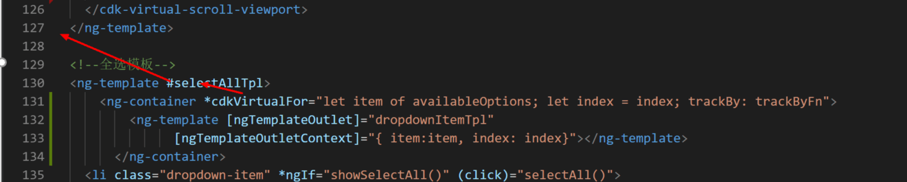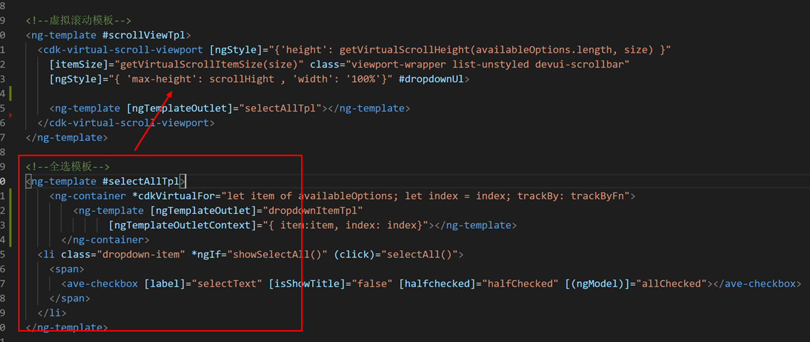 图9 内嵌整块模块使得能CdkVitualScrollFo能找到CdkVirtualScrollViewport(解法二)