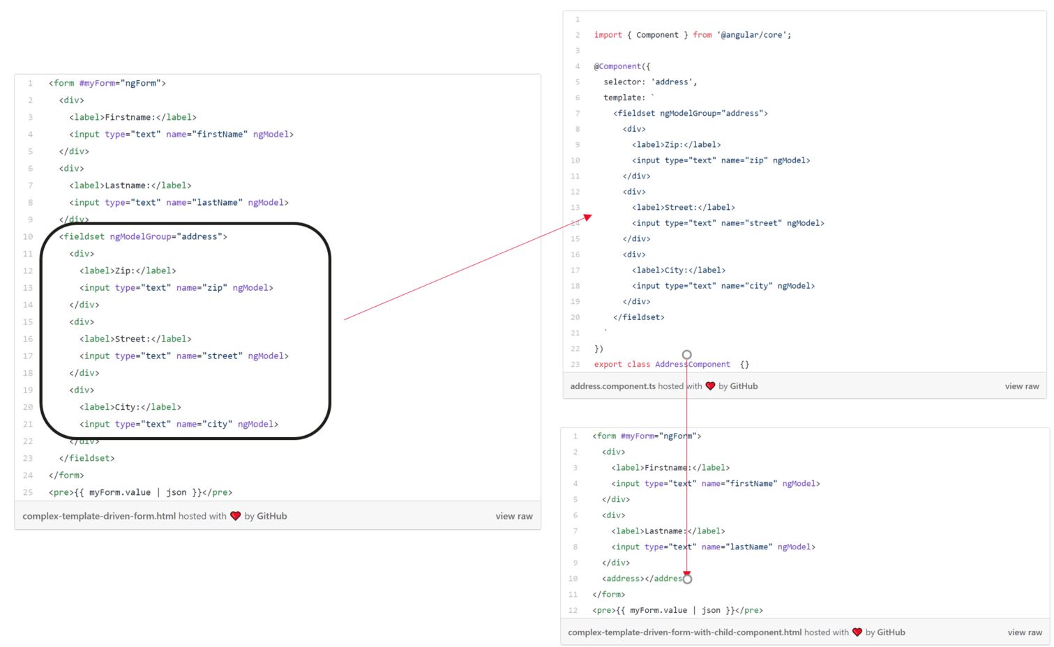 这个案例来自这篇博客《Angular: Nested template driven form》。