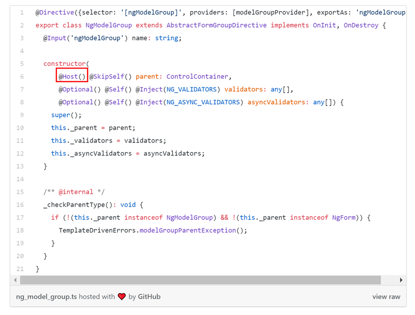 查看ngModelGroup代码可以看到它只添加了host装饰器的限制。