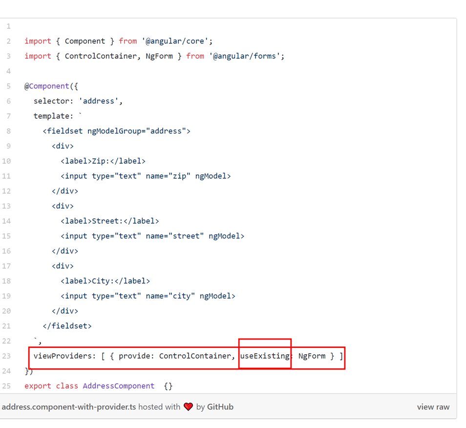 这里可以使用viewProvider搭配usingExisting给AddressComponent的宿主视图增加ControlContainer的Provider