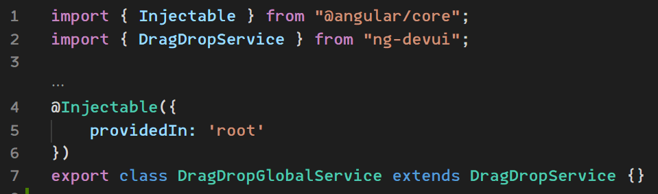 图15 用扩展方法获得一个新的DragDropService并把它标记为在root级别提供