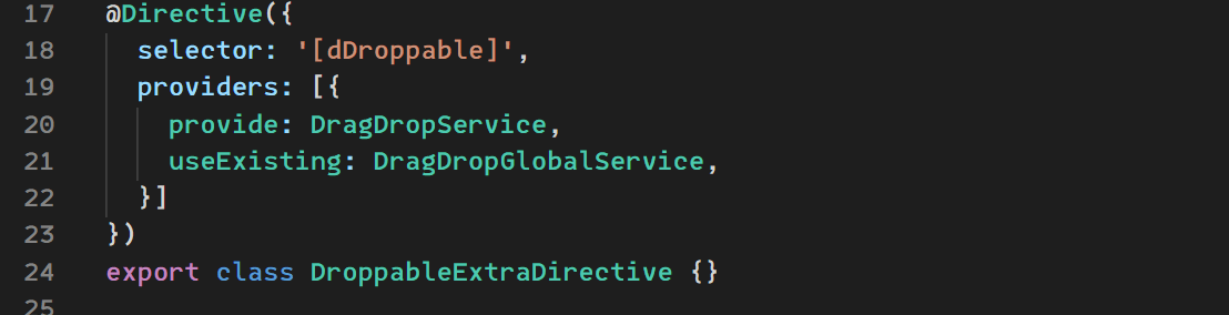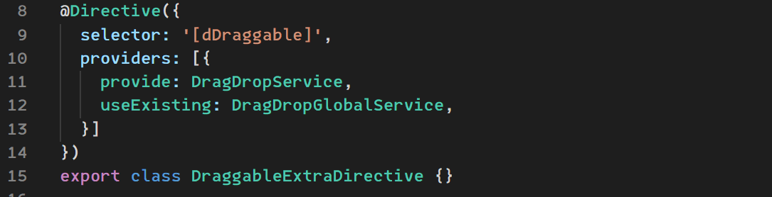 图16 利用同个selector可以叠加重复指令,给组件库的Draggable指令和Droppable指令叠加一个额外的指令并把DragDropService的token替换成已经在root提供单例的DragDropGlobalService