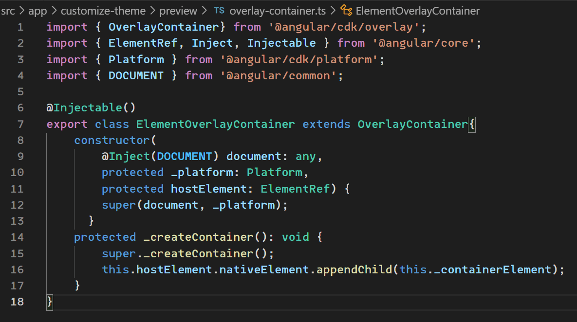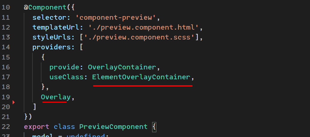 2)然后在预览的组件侧,直接提供我们新ElementOverlayContainer,并提供新的Overlay,以便新的Overlay能使用我们的OverlayContainer。原本Overlay和OverlayContainer都提供在root上,这里我们需要覆盖这两个。