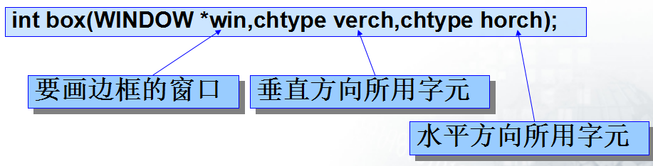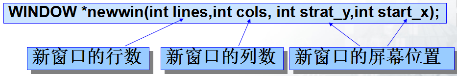 | 全局变量 WINDDW* curscr:当前屏幕 WINDOW* stdscr:标准屏幕 int LINES:终端上的行数 int COLS:终端上的列数 bool TRUE:真标志,1 bool FALSE:假标志,0 int ERR:错误标志,-1 int OK:OK标志,0 |