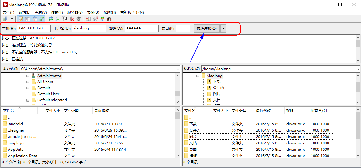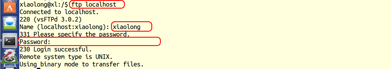 在命令行登录:xiaolong@xl:/$ ftp localhost