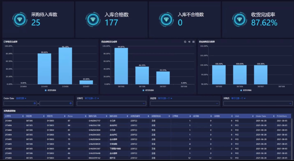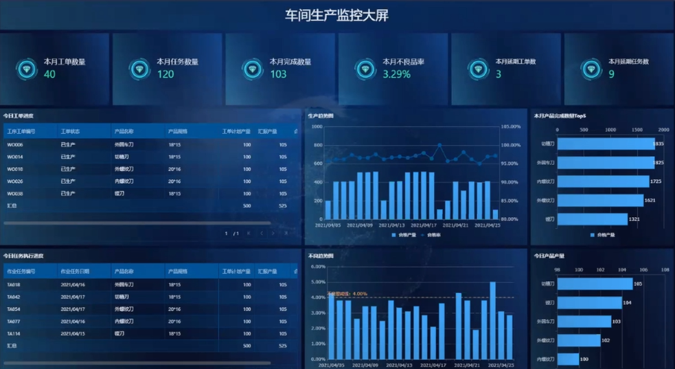 车间生产监控大屏可以完成对扫码报工的监控和跟踪。