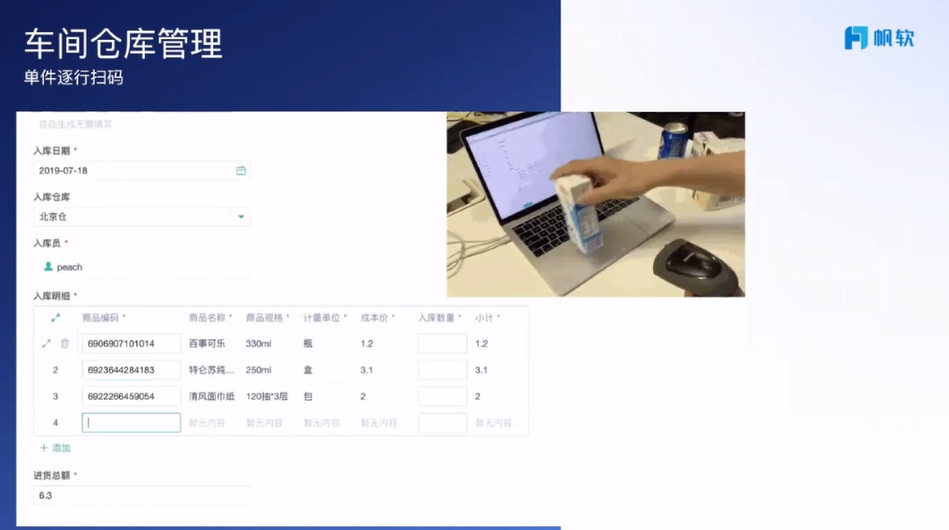 车间仓库管理也支持单件逐行扫码