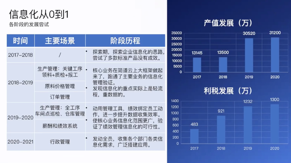 信息化发展从2017年开始完成了主要 四个阶段的发展,并且在产值和税务方面都是快速递增。