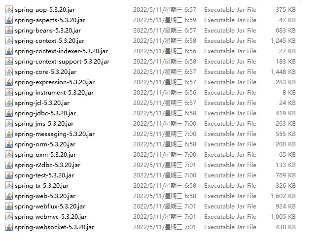 本笔记是采用spring-5.3.20版本,将下载好的压缩包解压后进入spring-framework-5.3.20\libs目录,可以看到Spring的各个组件。