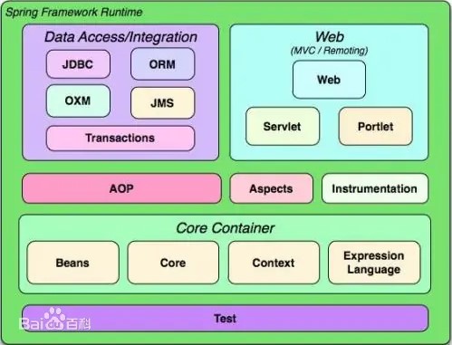 Spring框架主要由七部分组成,分别是 Spring Core、 Spring AOP、 Spring ORM、 Spring DAO、Spring Context、 Spring Web和 Spring Web MVC。
