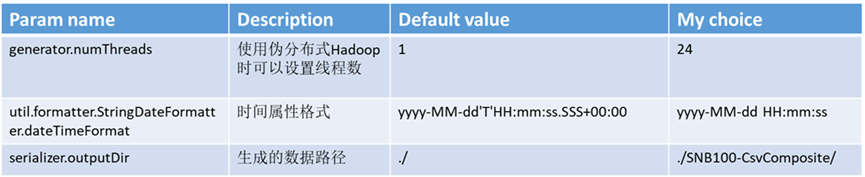 (以下参数介绍均省略了前缀“ldbc.snb.datagen.”,即参数的完整格式为“ldbc.snb.datagen.xxx”)