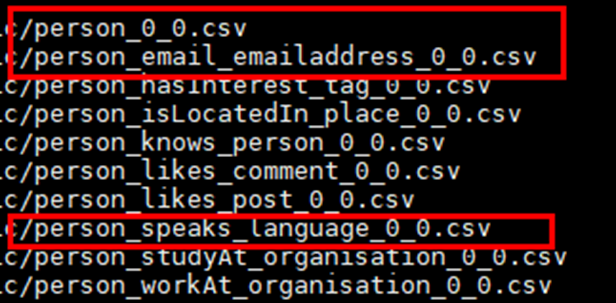 图一 每种节点、节点和节点之间的关系都有独立的csv文件,其中person_xx.csv均为person节点的属性数据。