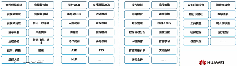 由全渠道SDK封装及适配能力SDK场景及服务自组合能力,数字化原子服务动态路由能力业务场景可视化编排能力,通过华为云基座自研的RTC实时音视频通信平台、华为云和自研的AI算法能力平台、自研的RPA流程自动化平台与第三方系统接入达到数字化原子服务场景化持续优化能力(可场景化、可训练、自主可控)。