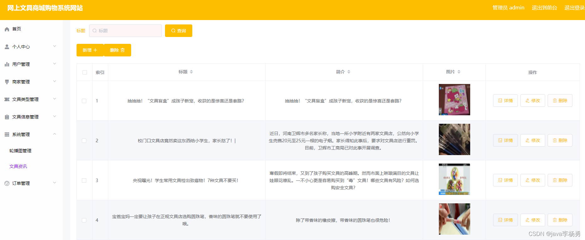61儿童节做了一个基于Java的儿童校园文具商城系统