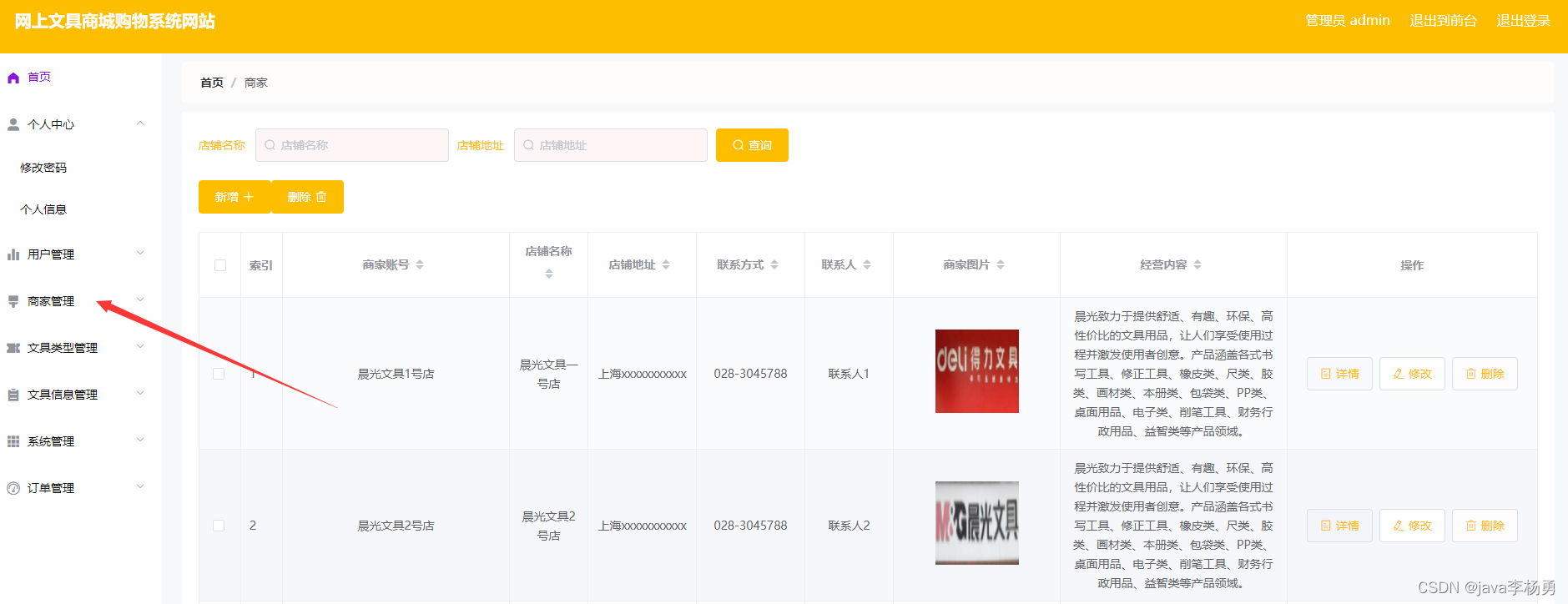 商家管理: