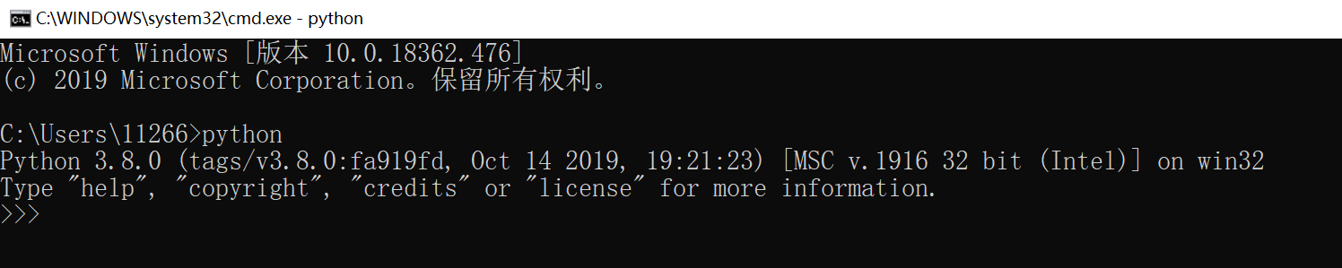 在命令行运行python,出现下面的提示就表示安装成功。