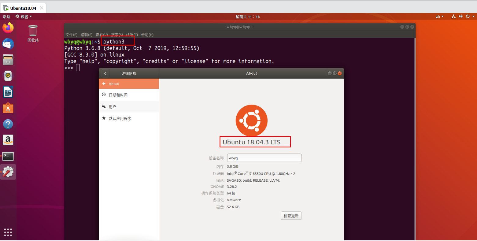 Ubuntu18.04预装的Python版本是3.6.8,Python3.6.8是3.6的最后一个版本。