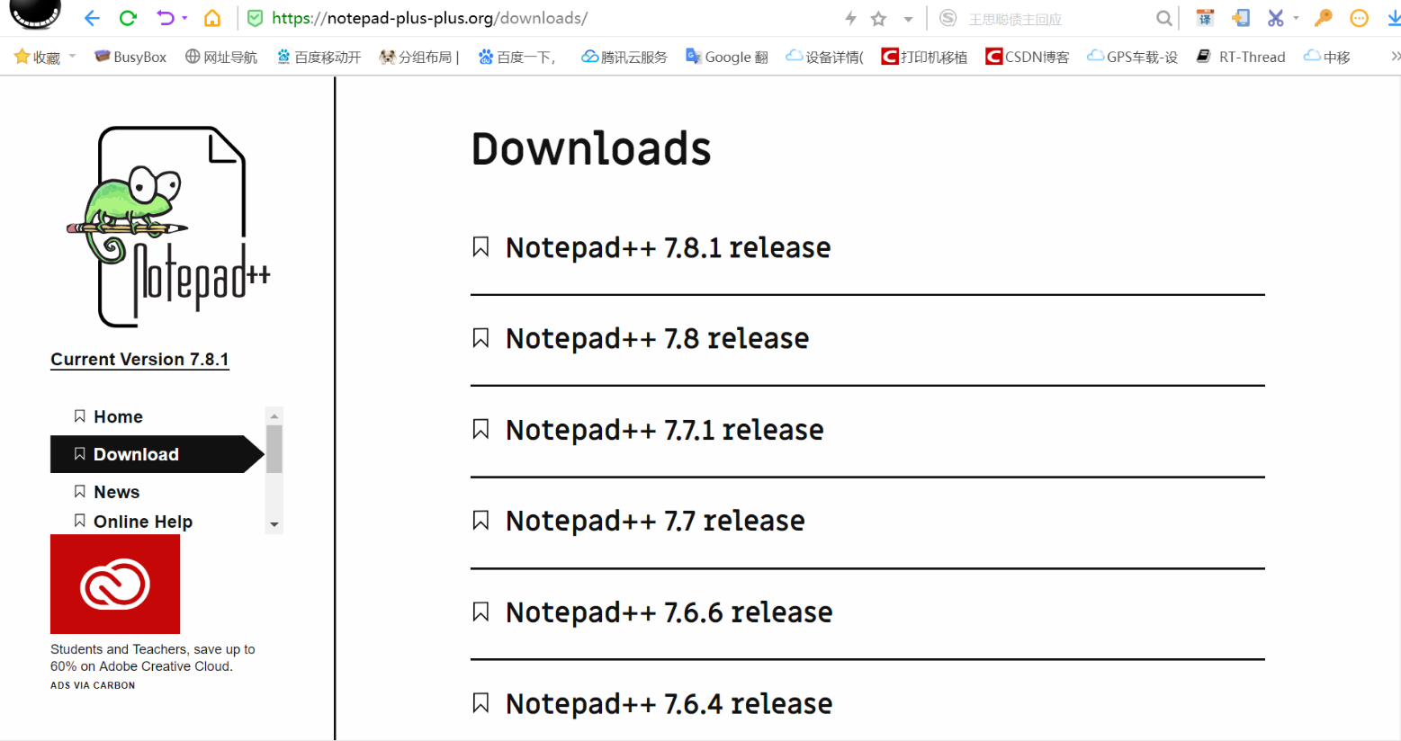 下载地址: https://notepad-plus-plus.org/downloads/