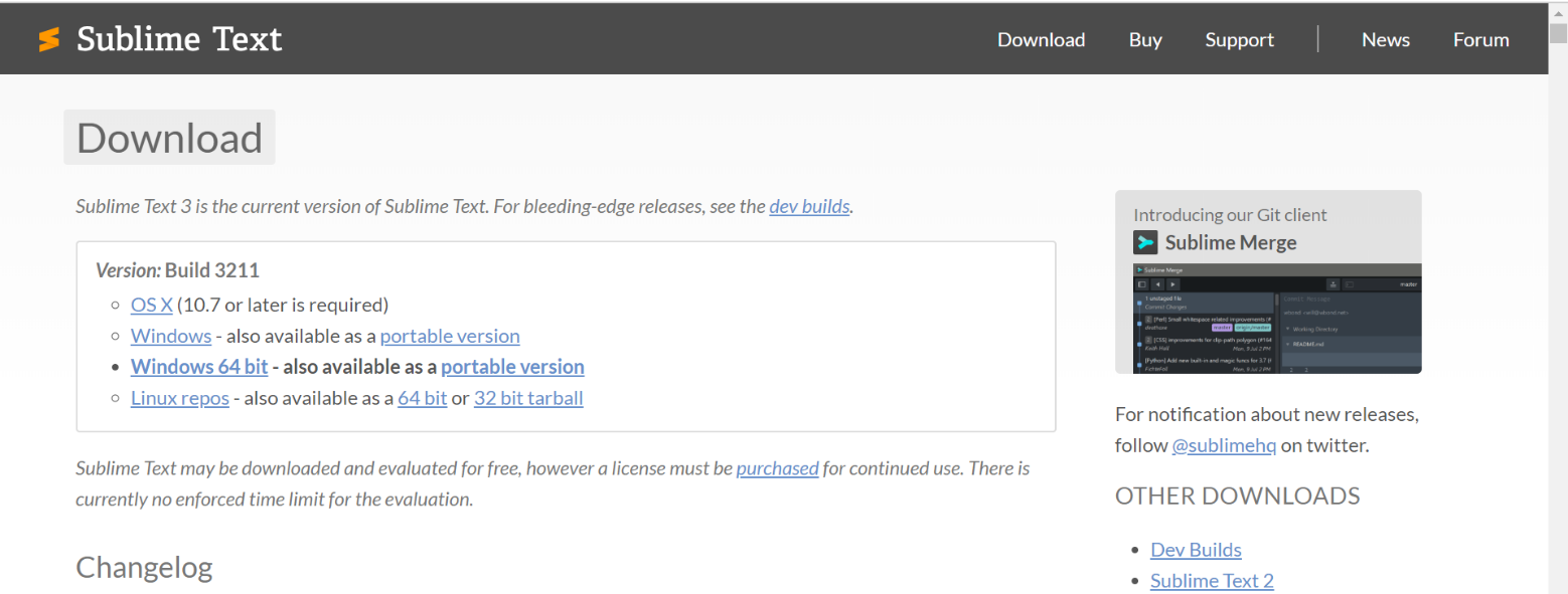 下载地址: http://www.sublimetext.com/3