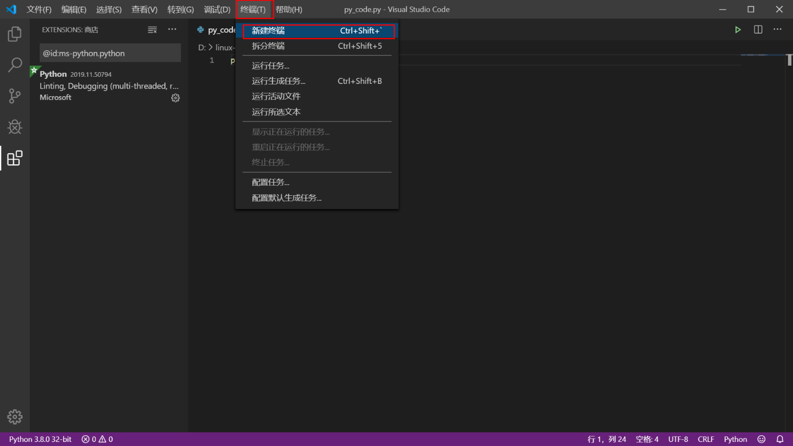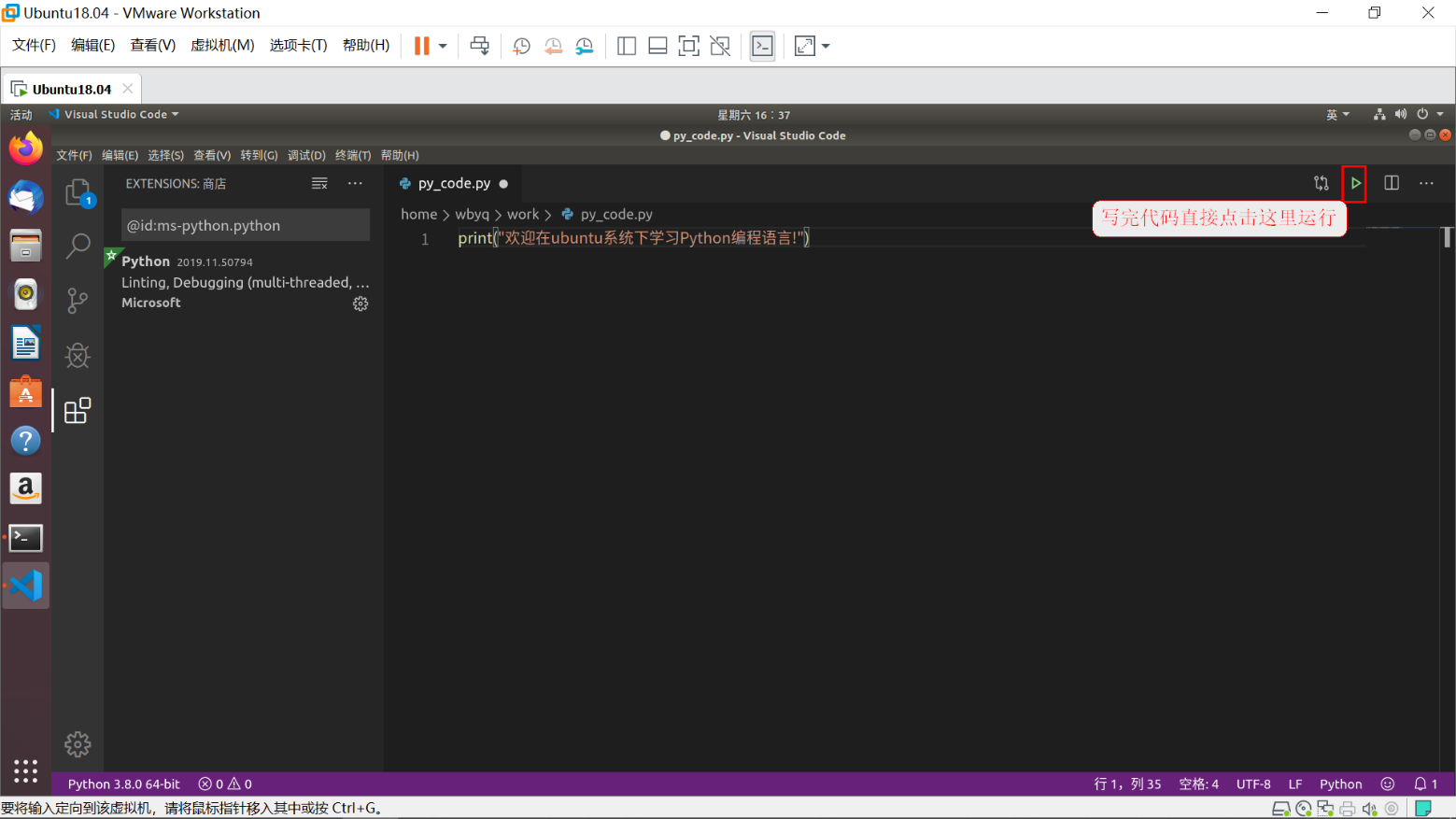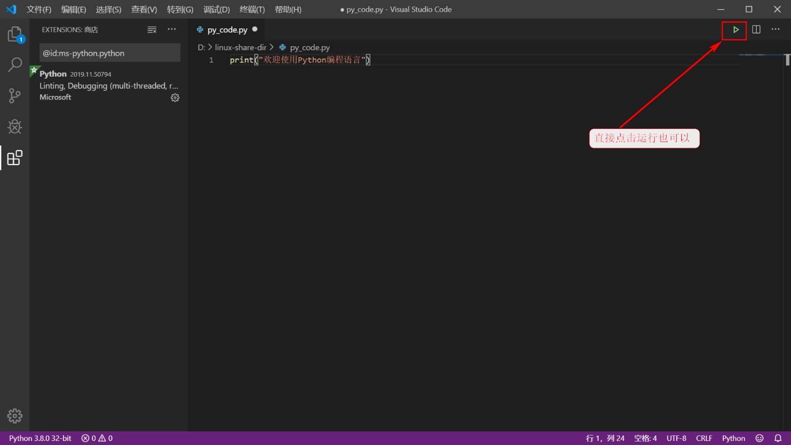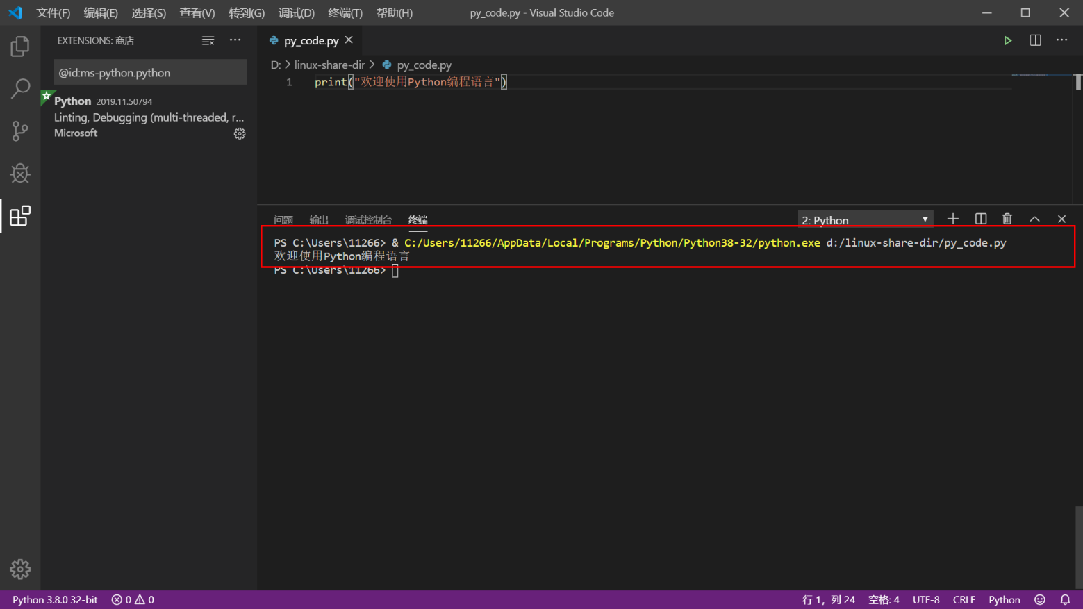 2.6.4 安装python扩展支持并运行代码测试