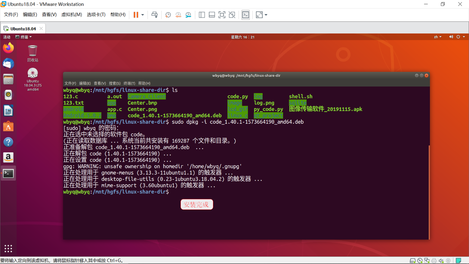 Ubuntu18.04命令行实际操作过程: