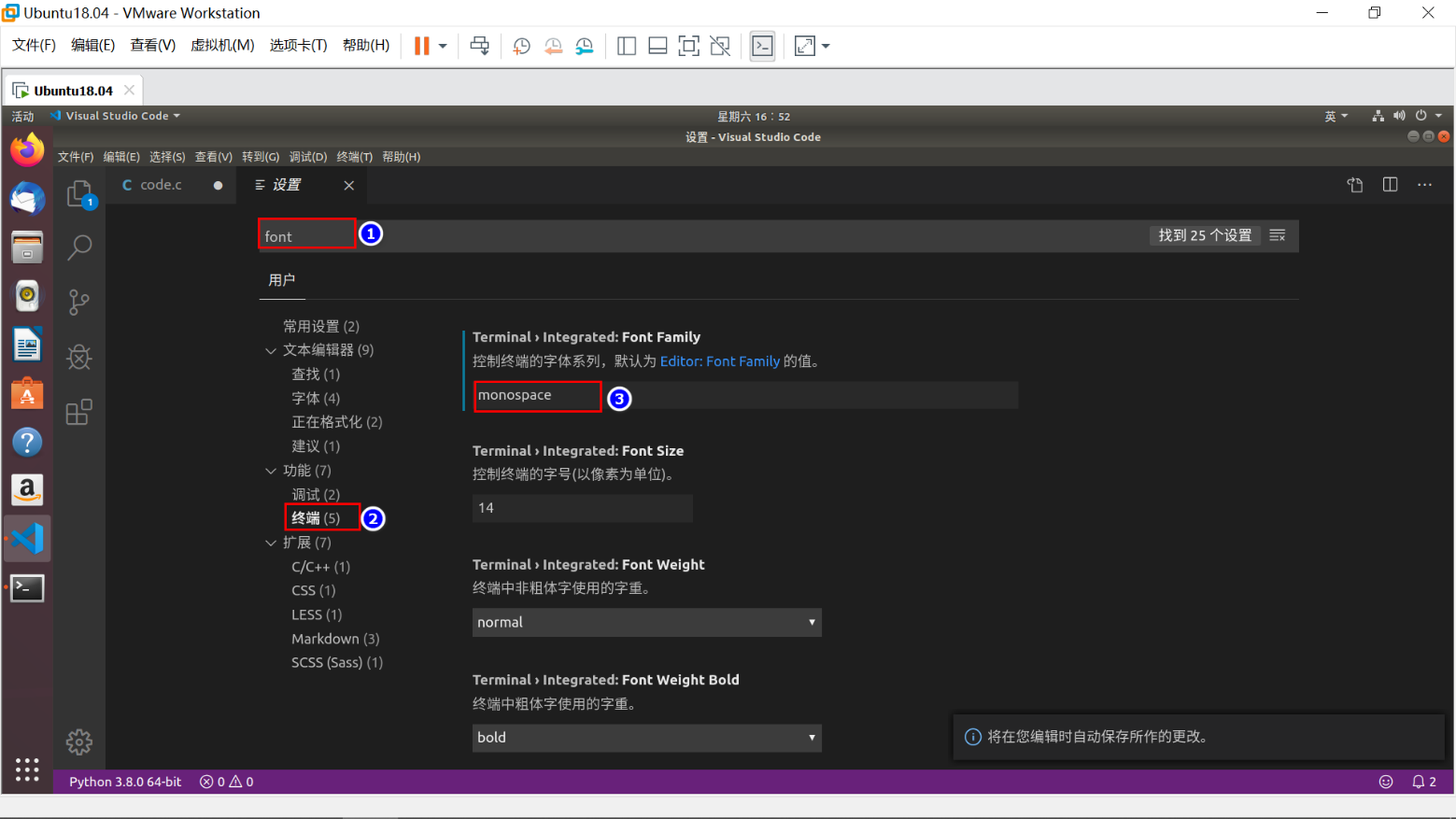 设置终端的字体为等线字体monospace
