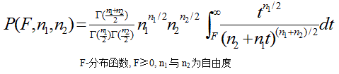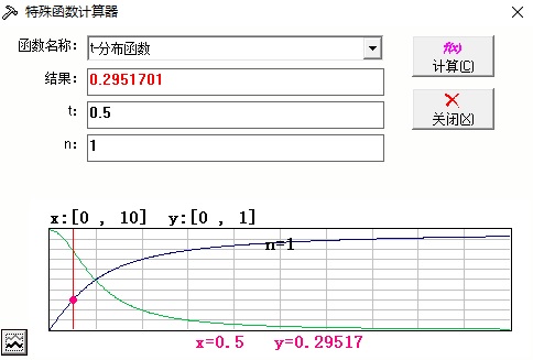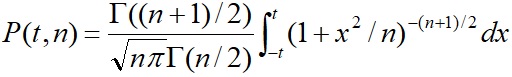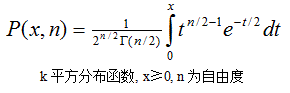 其中n为自由度,t为随机变量,t≥ 0,P(0,n)=0,P(∞,n)=1。